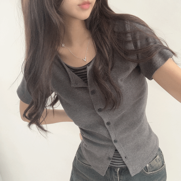 일체형 반팔버전 스트라이프 레이어드 버튼 가디건2color