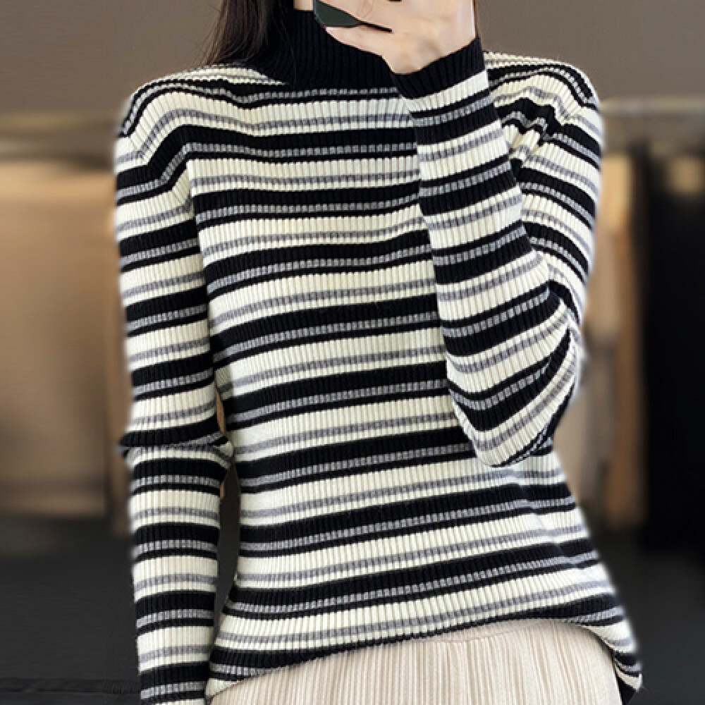 [나바바] NK1677 심플 베이직 단가라 반폴라 긴팔 니트티