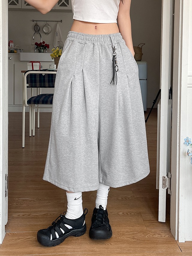 빅사이즈 S-2XL 티세얀 와이드 핀턱 밴딩 트레이닝 버뮤다 키링 7부 팬츠 반바지