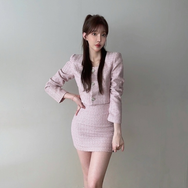 블루밍 트위드 크롭 자켓 슬림 미니스커트 투피스 세트 (2color) / 하객룩 데이트룩 오피스룩 면접룩 상견례룩 파티룩