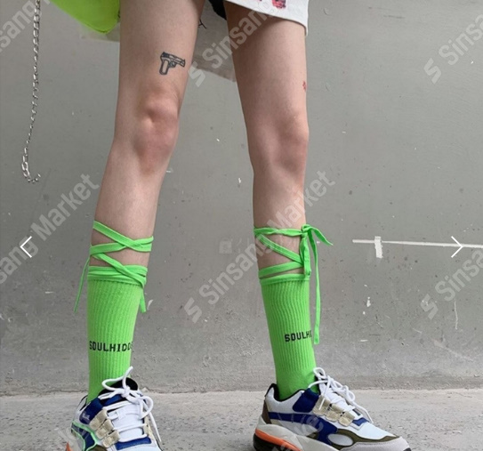 히든 양말 (롱 형광 네온 레터링 발레 리본) - 형광노랑, 소라, 아이보리, 핑크, 블랙, 오렌지, 옐로우, 연두
