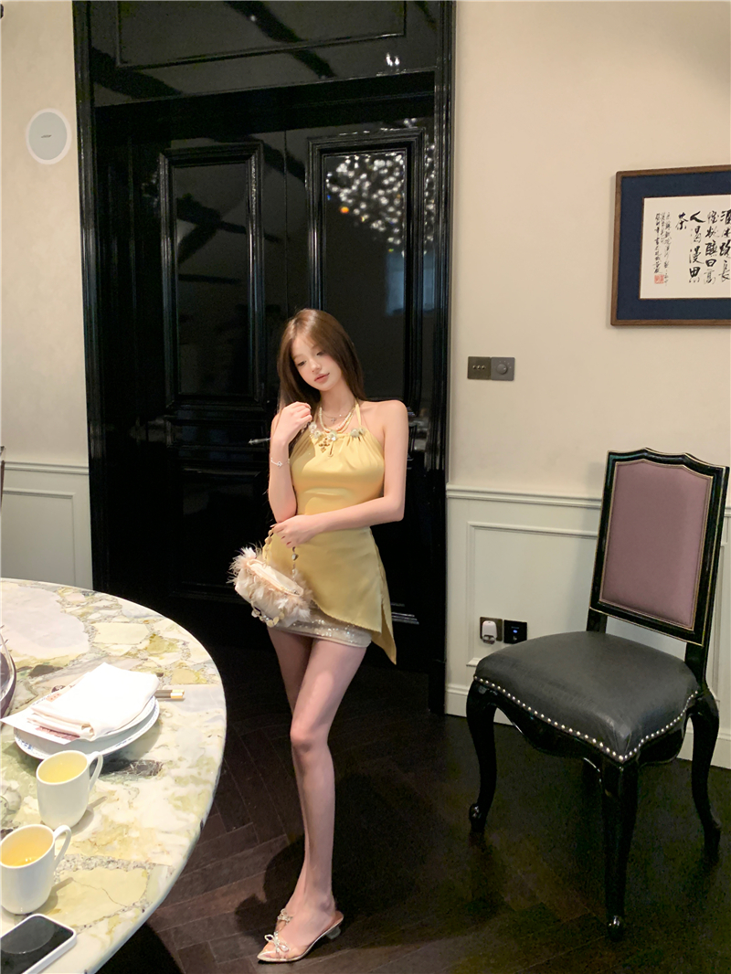 (코디세트)플라워 홀터넥 언밸 나시+스팽글 미니스커트 세트 누누아SN718