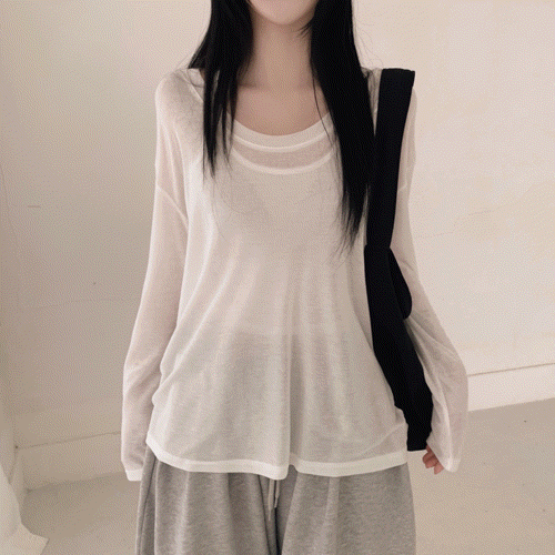 [나시+티셔츠세트] 실루엣 루즈핏 시스루 긴팔 + 이너나시 세트 2color