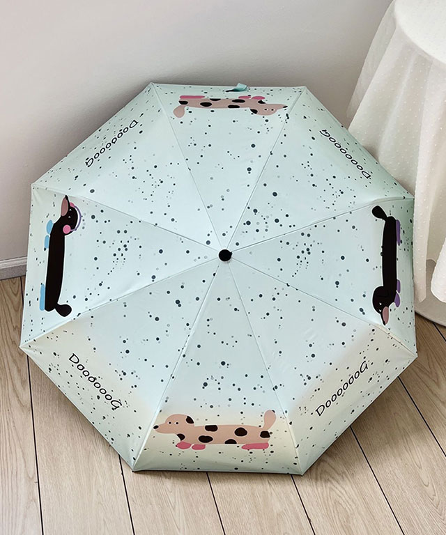무드바이브 귀엽고 편한 민트 닥스훈트 강아지 접이식 3단 자동 우산 양산 우양산 양우산 투명 자외선 차단 미니 경량 암막 생일 선물