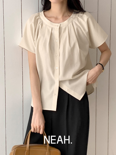 [하객룩][NEAH] 위키 핀턱 반팔 블라우스