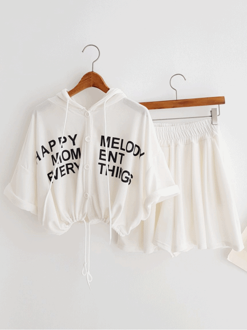 [후드SET] 유니크 단추 오픈 후드티셔츠 후드반팔티 크롭후드티 밴딩 숏팬츠 반바지세트 치마바지 여름 트레이닝복 추리닝세트 여름휴가 바캉스룩 이지웨어세트 휴양지룩 썸머세트