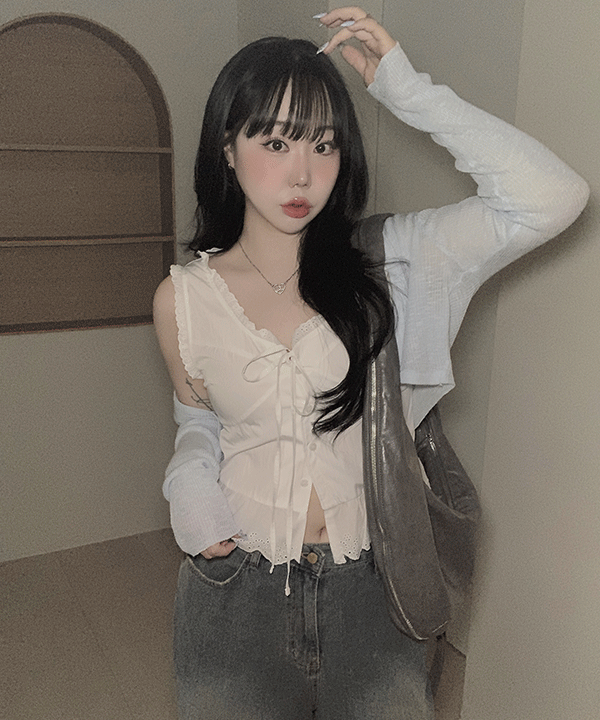 #13306 소프트 시스루 살안타템 크롭 니트 볼레로 : 7color