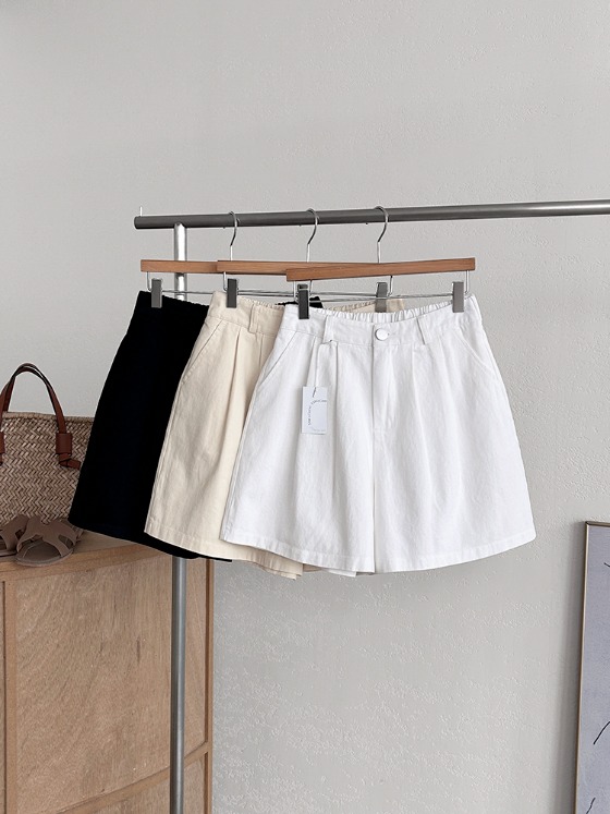 쇼어 뒷밴딩 하이웨스트 핀턱 버뮤다 팬츠
