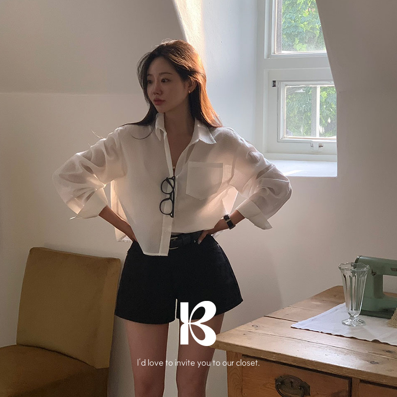 [MADE/햇빛차단]페어리 시어서커 스트라이프 크롭 셔츠