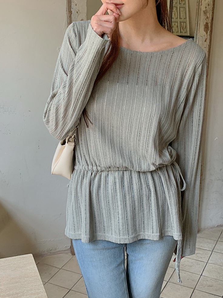 [무료배송][가벼운착용감/체형보완] [44-120] 펀브엔 린넨 보트넥 시스루 스트링 트임 니트( 봄-여름-썸머-데일리룩-트렌디룩-여행룩-빅사이즈-120사이즈-보트넥니트-시스루니트-스트링니트-트임니트 )