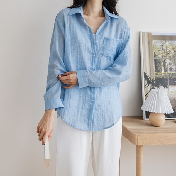 (국내배송) 현지 베이직 시스루 남방셔츠