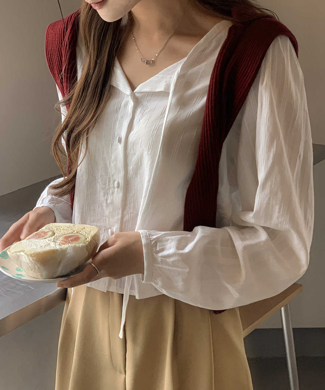 [MADE/3만장돌파] 로힌 퍼프 스트랩 블라우스 (S-L/데일리룩/데이트룩/출근룩/가을블라우스/긴팔블라우스/가을하객룩)