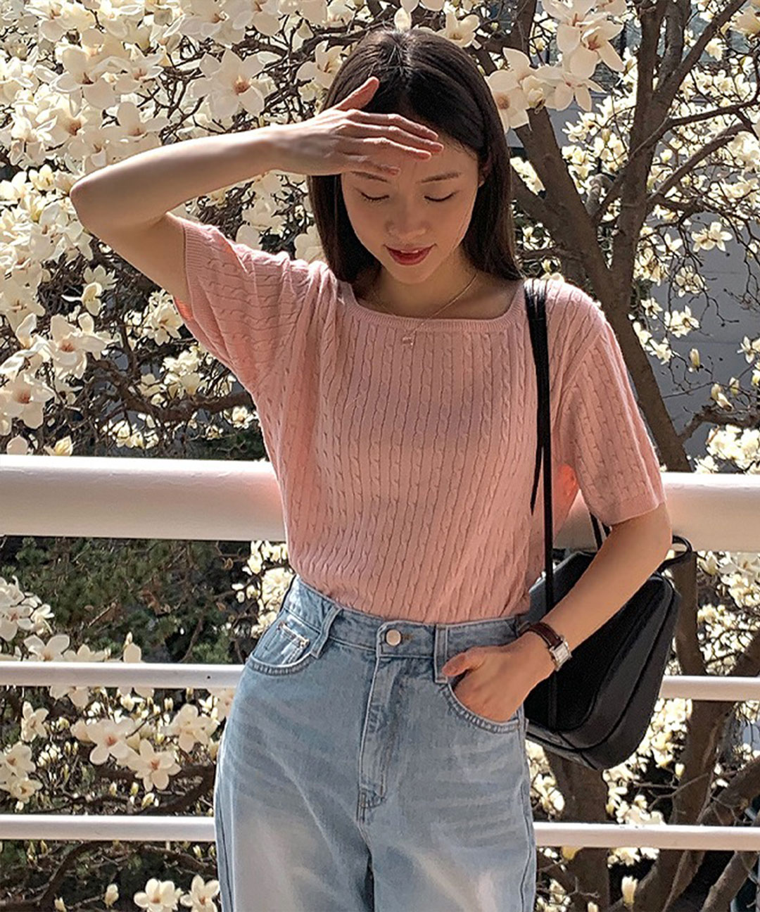 [여름 BEST🌿/2천장돌파][+S,M,L사이즈][Made]레아 코튼 케이블 반팔 니트(ver.스퀘어넥) - 4 color
