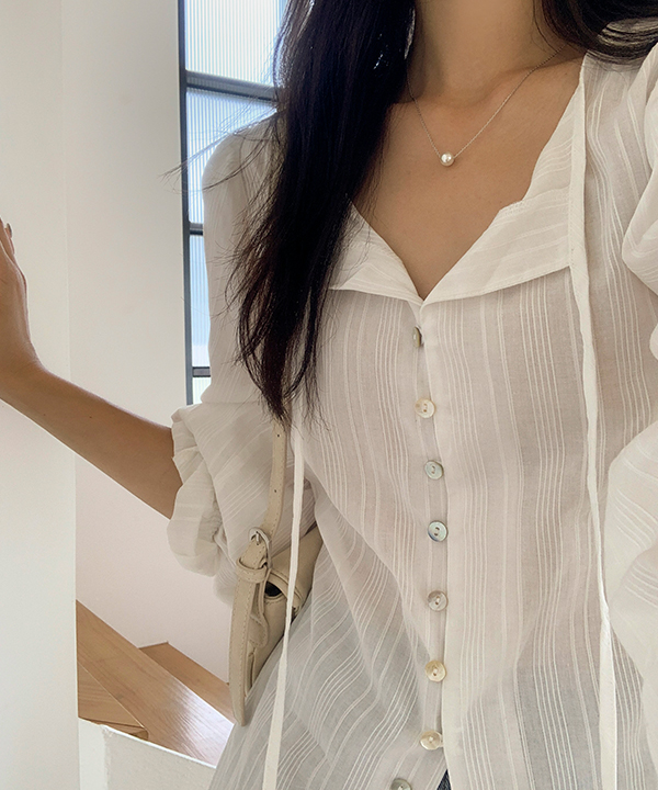 [단독] [하객룩🤎/made] 헤인 자개 단추 블라우스