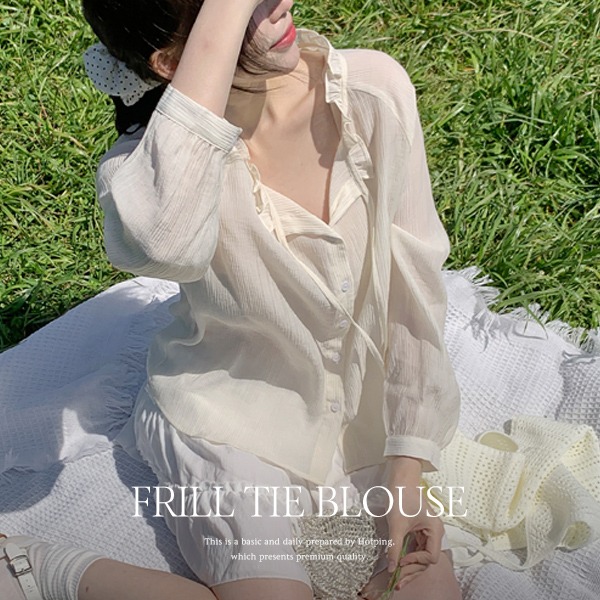 [하객룩/여리핏][MADE] 르또아 링클 프릴 타이 긴팔 블라우스 (44~110) (빅사이즈블라우스-스트랩블라우스-타이블라우스-링클블라우스 -체형커버-프릴블라우스-리본블라우스-페미닌룩-하객룩)