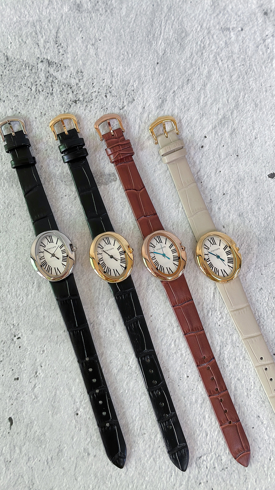 여성용 가죽 손목 시계, 여자 가죽시계, 아나로그 손목시계, 여자 라운드 시계, 심플한 시계