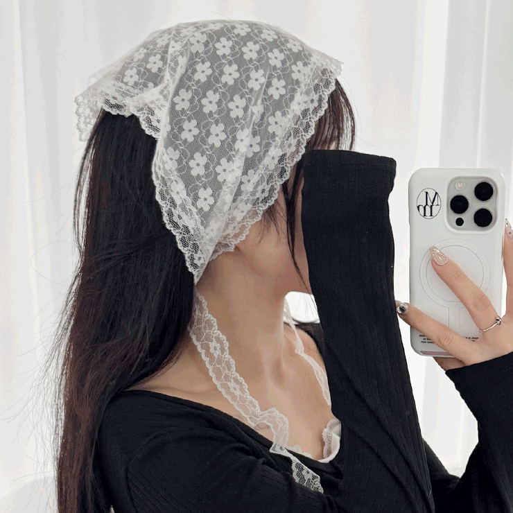 플라워 시스루 헤어커치프 레이스 삼각 반다나 보닛햇 두건 스카프 레이어드 2631