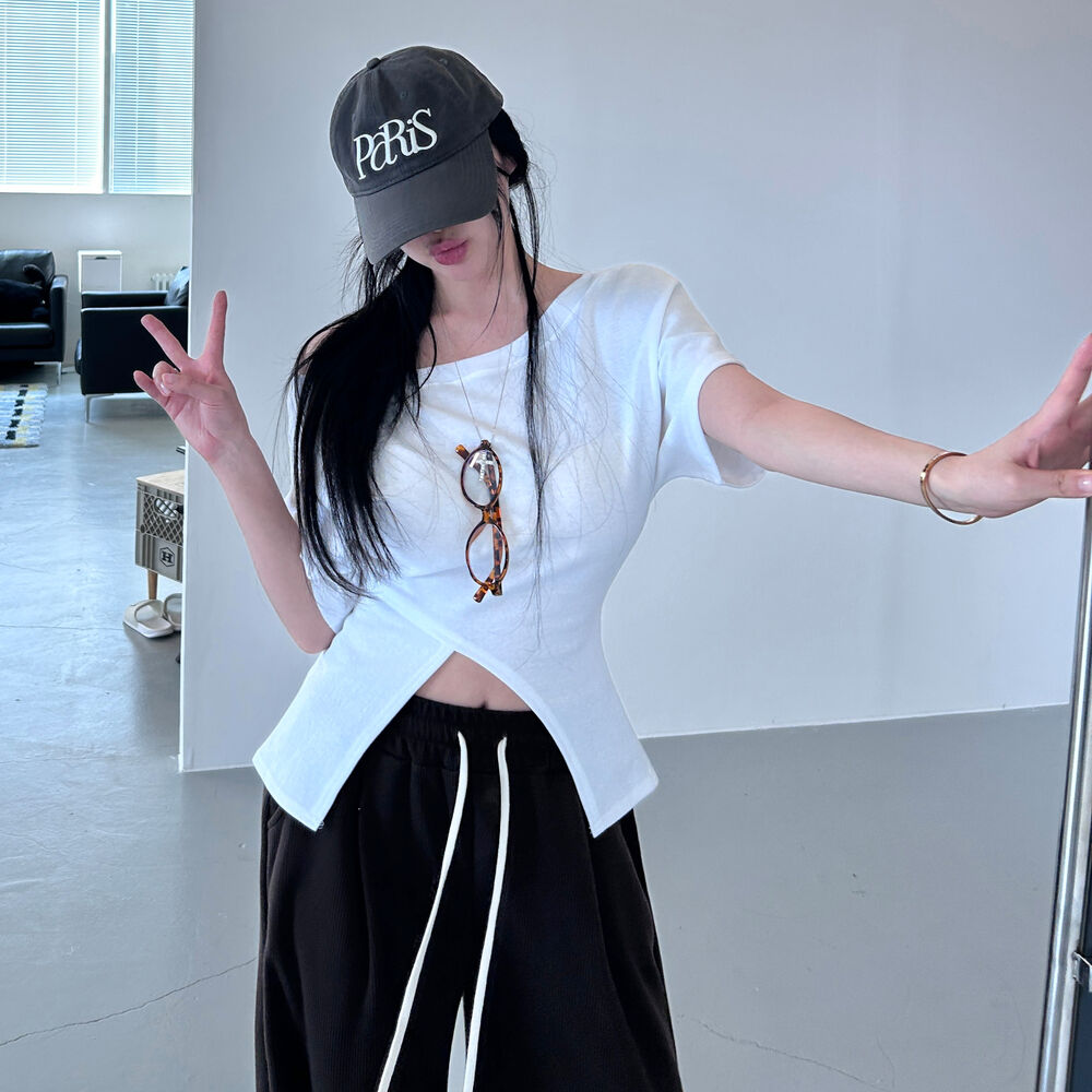 [RWOO.A]립라인 언발 트임 티셔츠 -3color / 반팔 반바지 핀턱팬츠 롱팬츠 3부팬츠