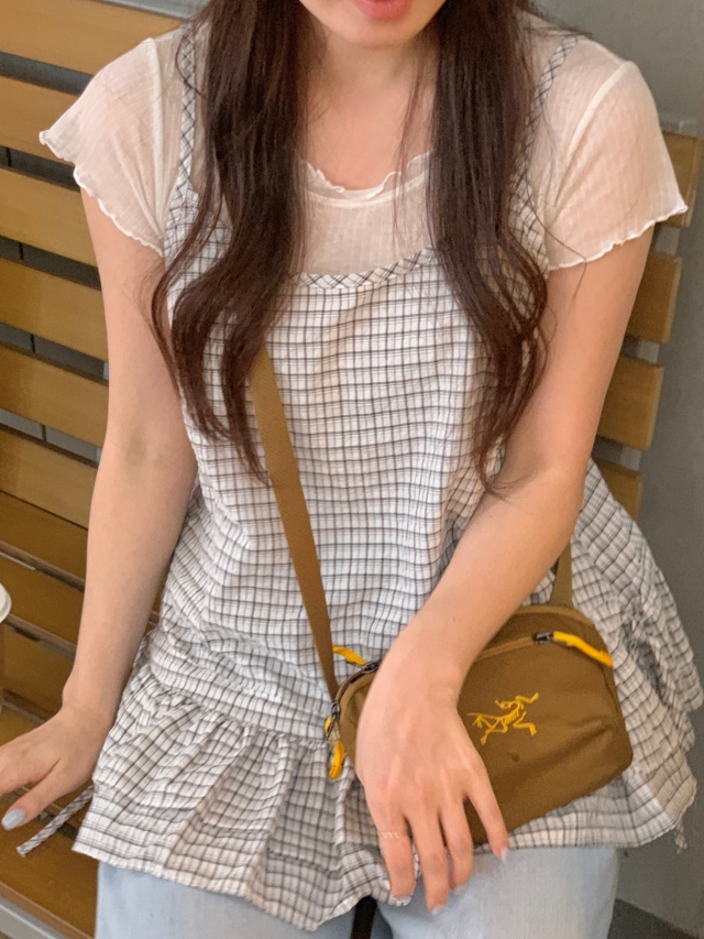 제트 체크 캉캉 레이어드 뷔스티에 나시