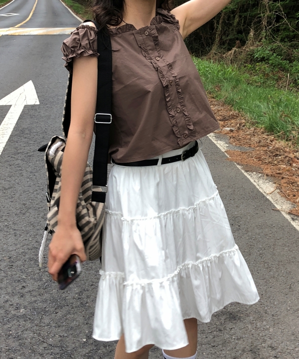 [벨트세트/캐주얼] 플로라 3단 캉캉 프릴 미디 허리 뒷밴딩 스커트 하객룩 데이트룩 3 color