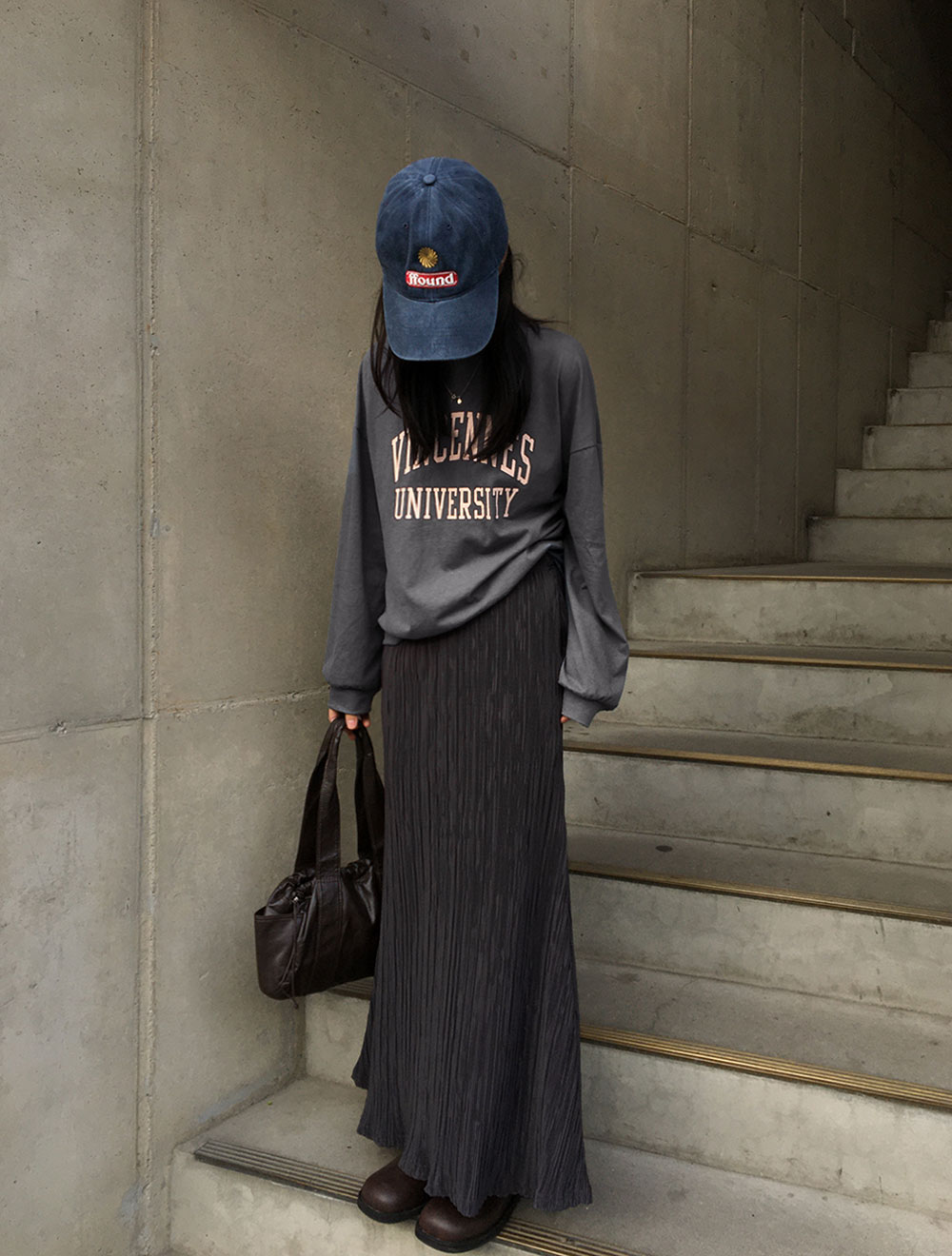 자글 플리츠 맥시 밴딩 스커트 (2color)