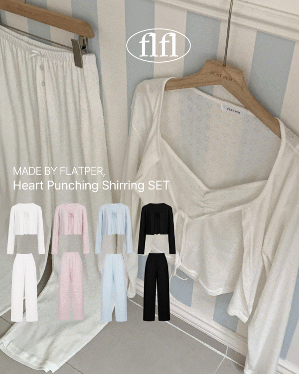 [MADE]애착 하트 펀칭 셔링 나시 + 리본 가디건 + 리본 팬츠 라운지웨어 3pc 4color