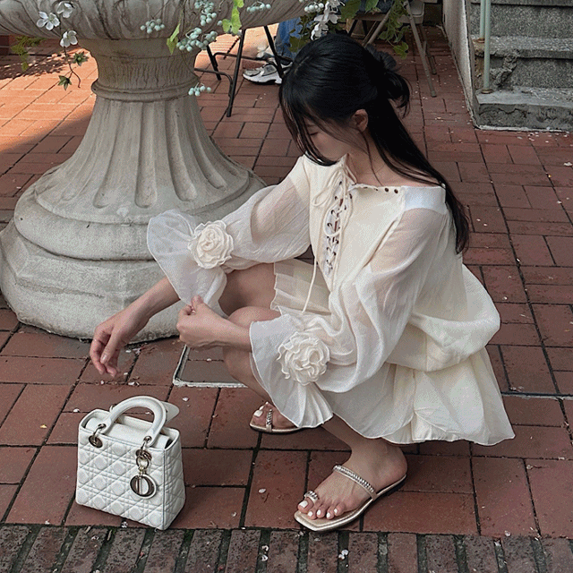 아일렛 코르셋 오프숄더 블라우스