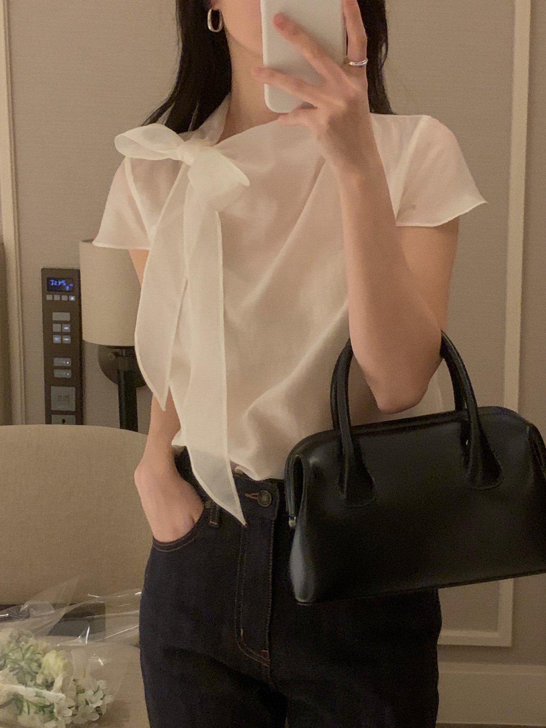 25SS 샤인 리본 블라우스 시스루 하객룩 반팔 여름