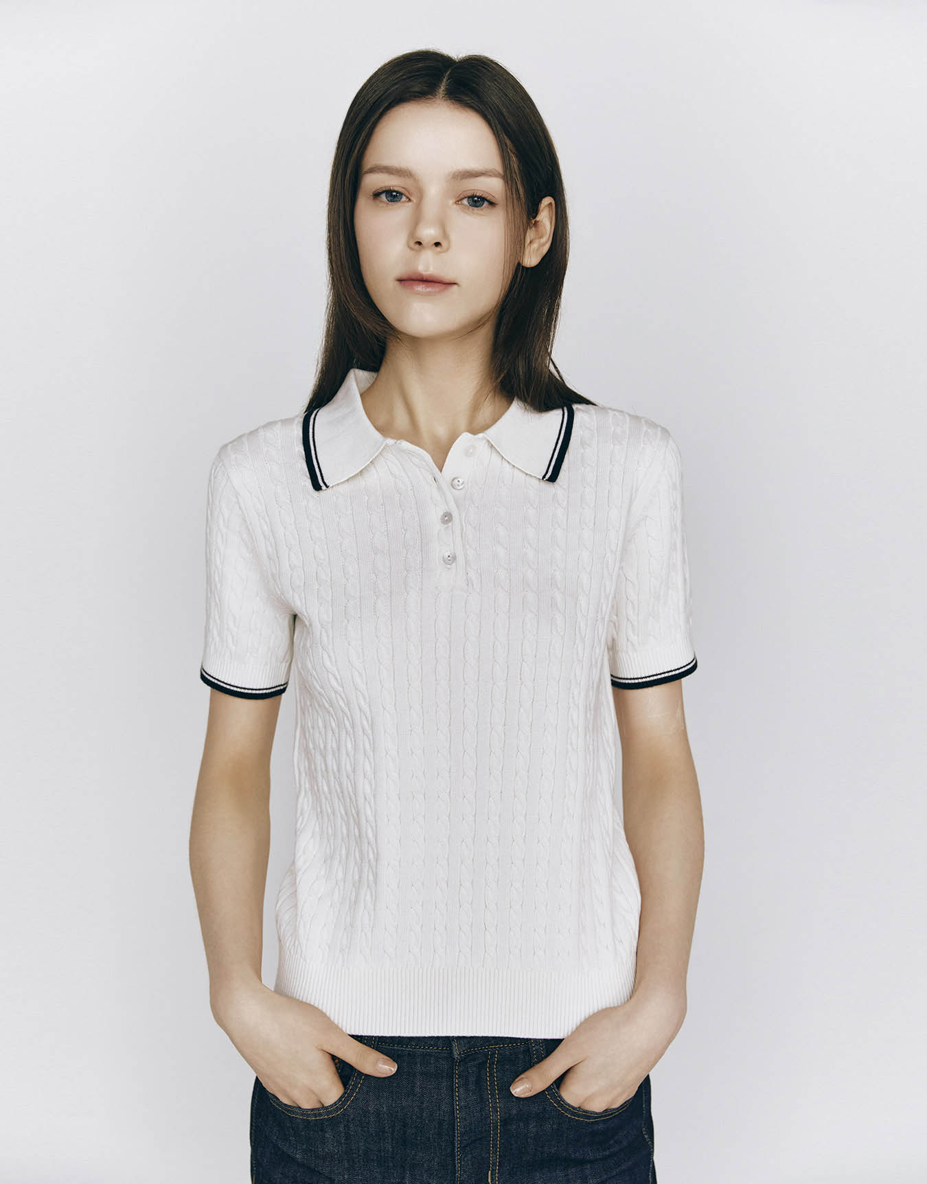 케이블 폴로넥 반팔 니트 [6color] 355530