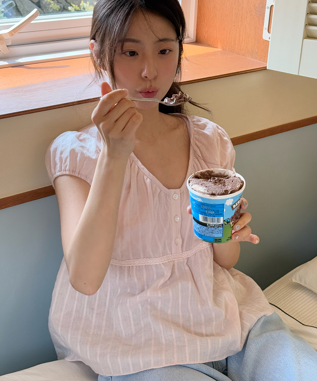 퓨어 레이스 셔링 블라우스 ( 2 colors )