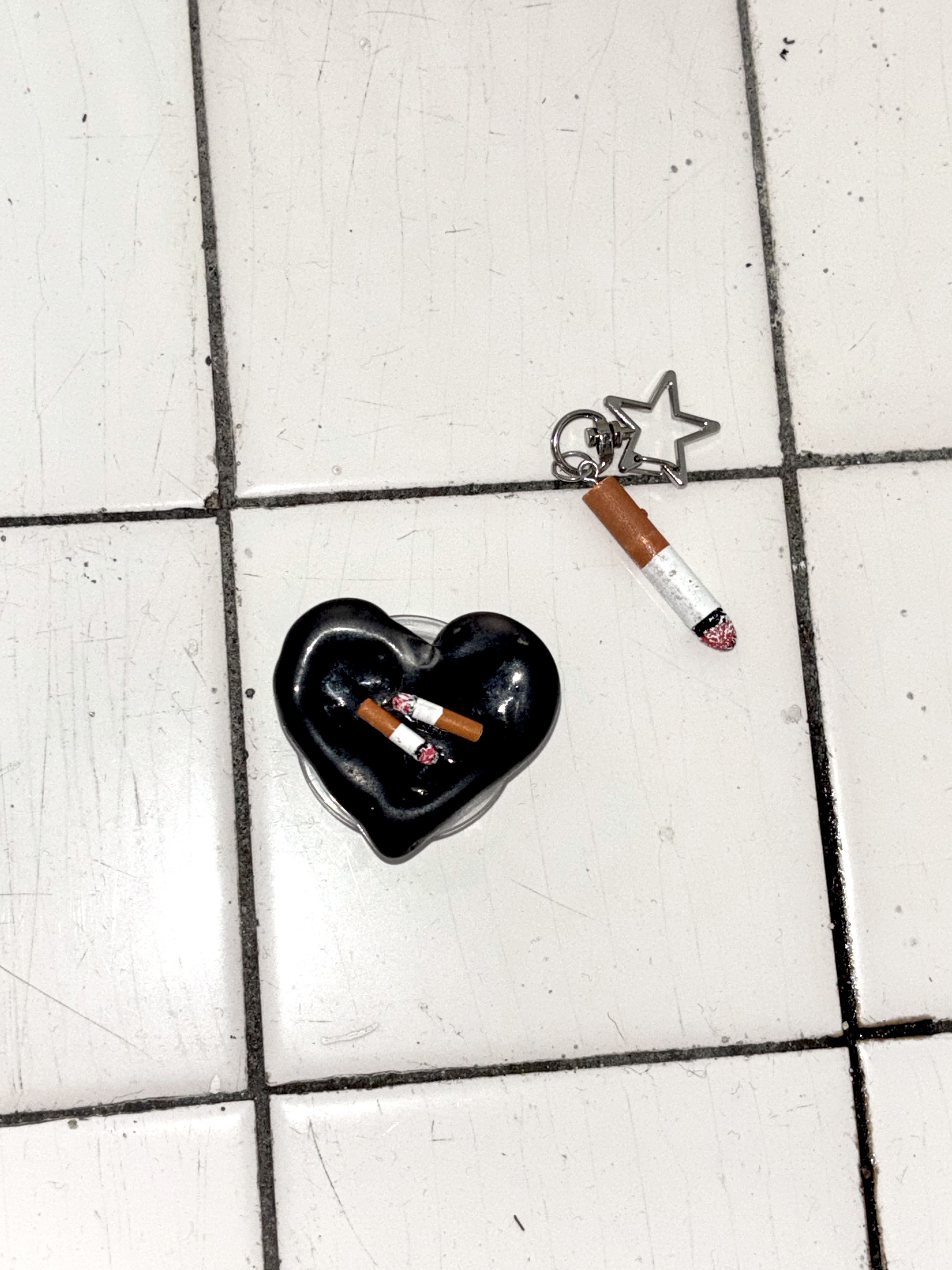 y2k 유니크 재떨이 스모크 담배 블랙 하트 호마이카 톡 핑거톡 스마트톡 거치대 폰꾸 폰꾸미기 폰악세사리 희귀한 독특한 친구선물 선물