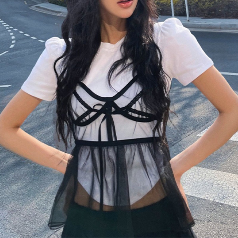 네트뷔스티에 꾸안꾸 포인트 시스루 레이어드 프릴 나시