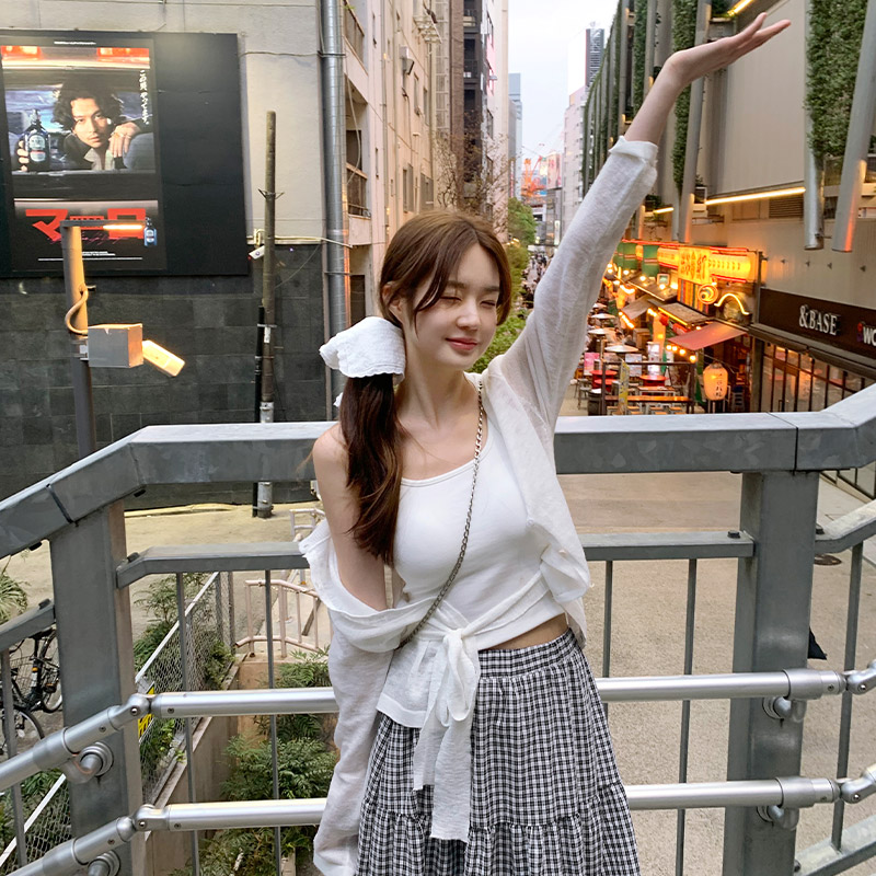 (허리스트랩/니트가디건) 미스티 시어 라운드넥 리본 슬림 니트 가디건 시스루가디건 리본가디건 슬림핏가디건 라운드넥가디건 여리핏코디 꾸안꾸룩 데일리룩 나들이룩 여성가디건 nt5075