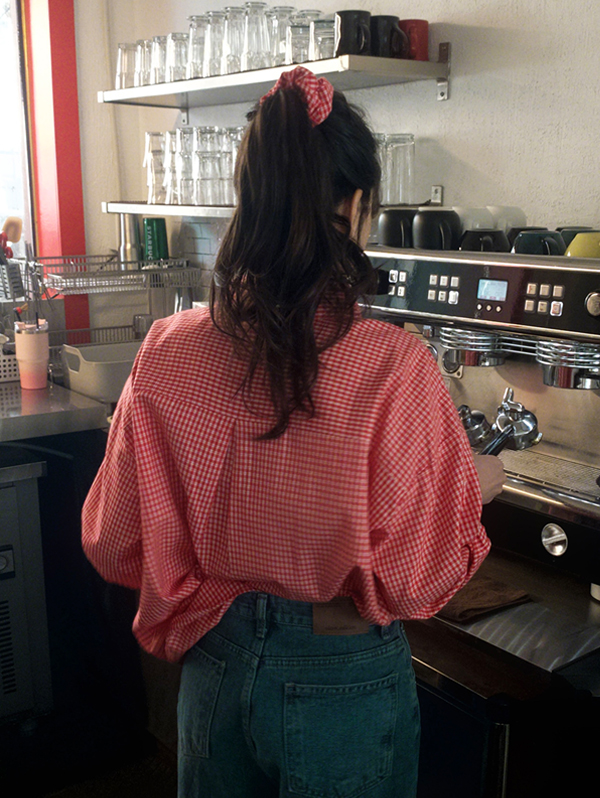 [오늘드림🚚/스크런치 set!] only. 프레즐 레터링 체크셔츠 - 2 color