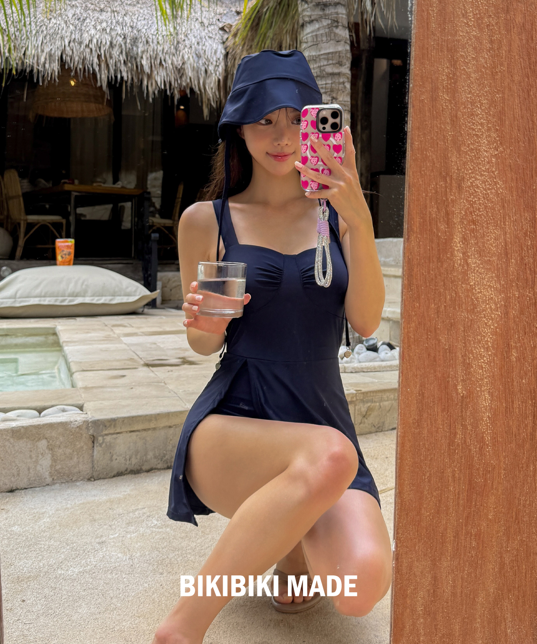 [MADE/M-XL❤️] 오벨 원피스 수영복 버킷햇 세트 에이라인 미니 스커트 원피스 슬릿 스퀘어넥 수영복 스커트 체형커버