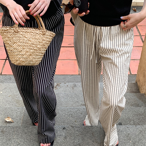 [단독] [당일발송/2만장돌파/스트라이프팬츠][MNLB] 스텝 썸머 시어서커 스트라이프 밴딩 와이드 팬츠 (기본,롱/2사이즈)