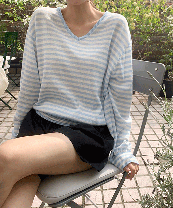로토엔 루즈핏 브이넥 단가라 린넨 니트 -5color (데일리룩/여름니트/살안타템/브이넥니트/린넨니트)