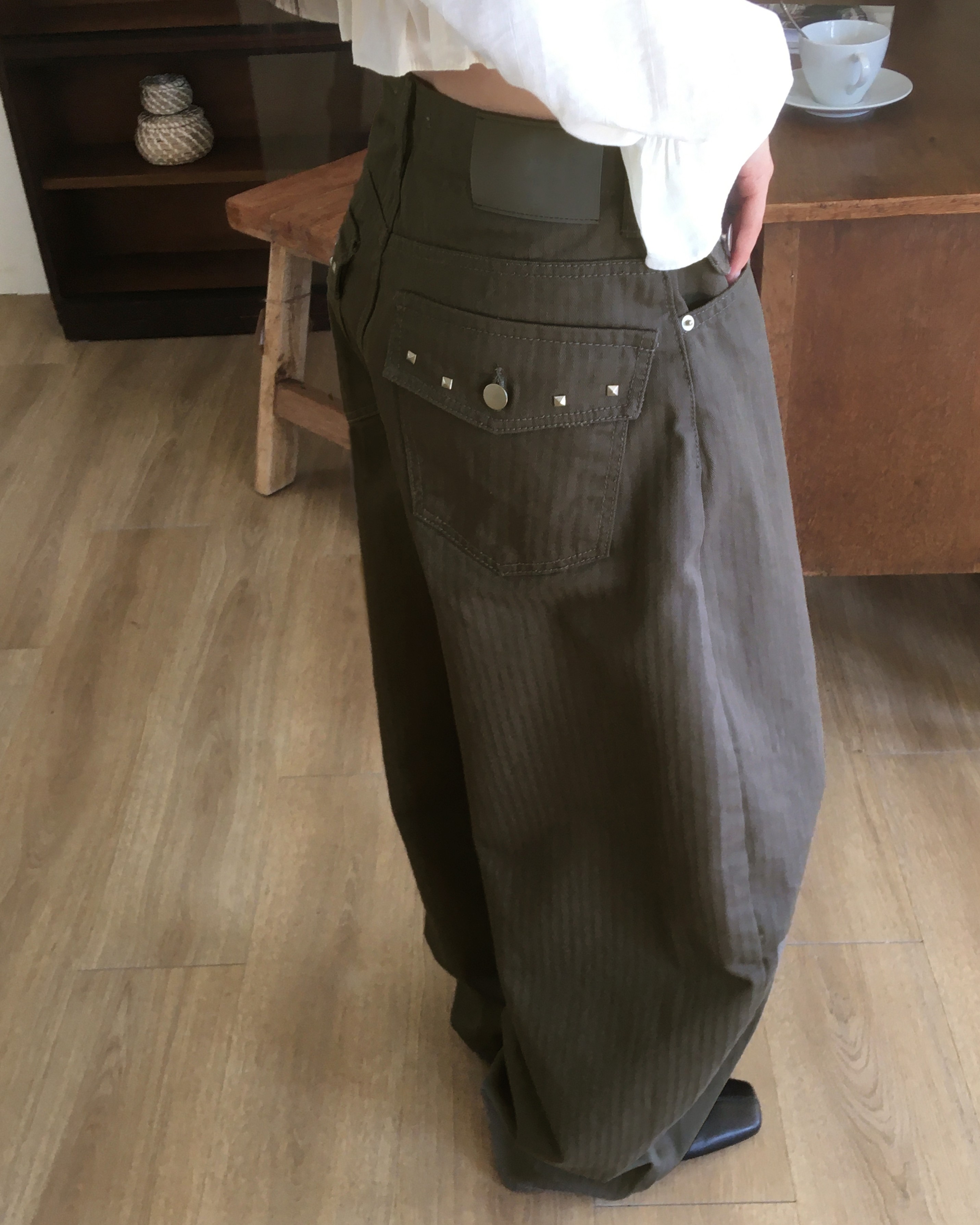 [백포인트✨] 핏츠 스터드 백포켓 줄지 코튼 와이드 팬츠