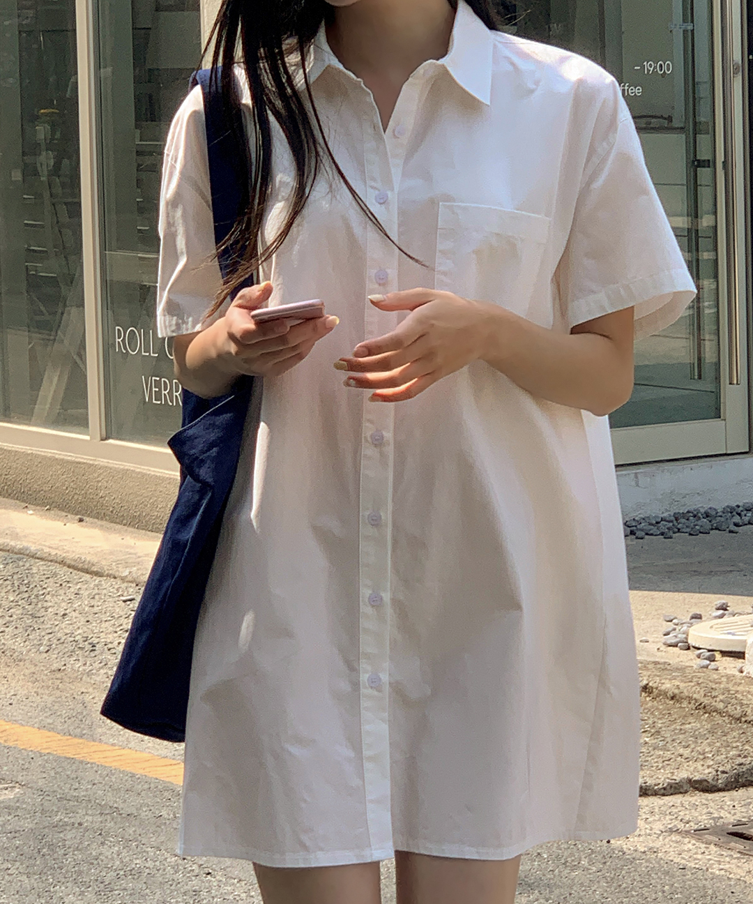 [자체제작/S-M]토피아 코튼 셔츠 원피스 (데일리룩/데이트룩/셔츠원피스/여름원피스/반팔원피스/미니원피스/장마룩)