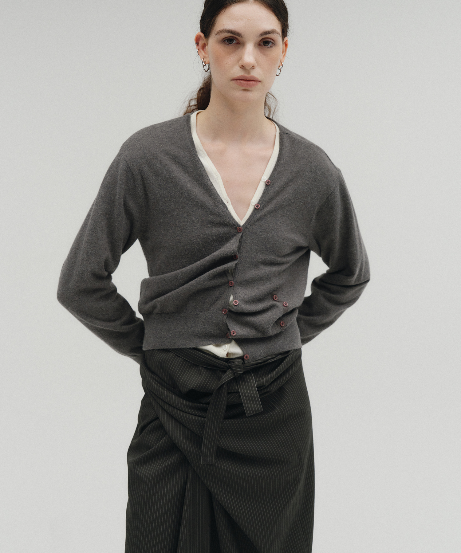 TWO WAY BUTTON CARDIGAN [GREY]