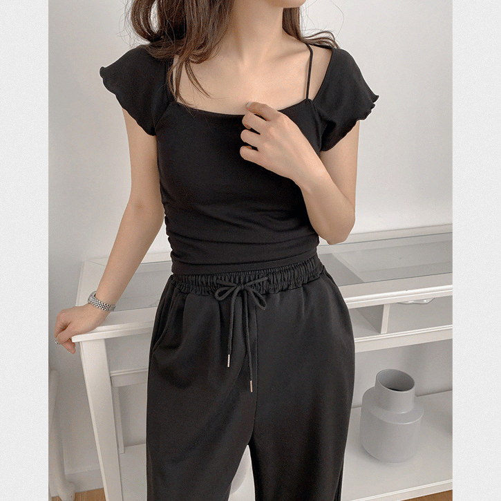 [캡내장o/모달혼방/양옆셔링]라인포인트 나그랑셔링캡반팔티