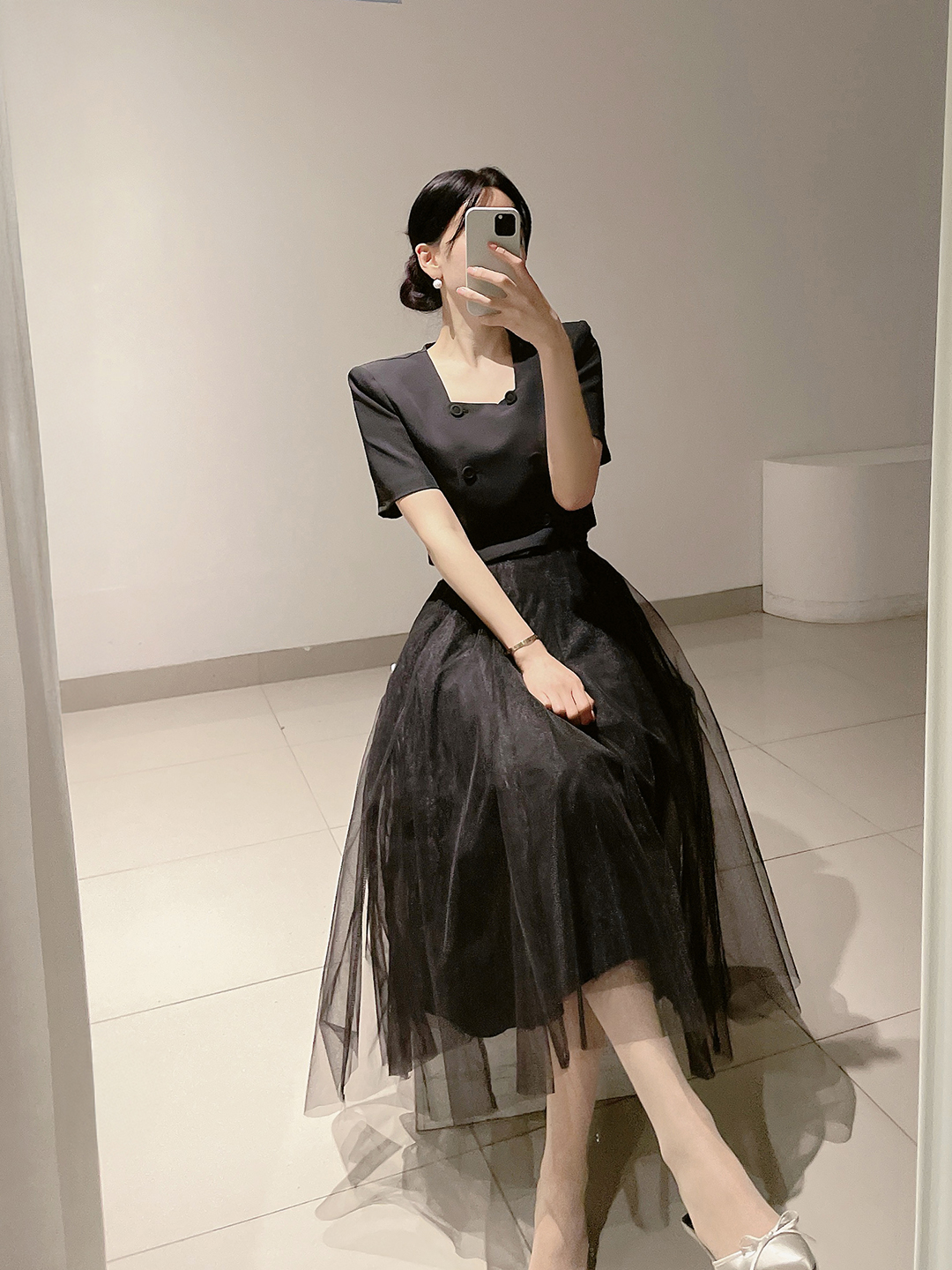 테인 샤 스커트 하객패션 모임룩 풍성한 망사 치마