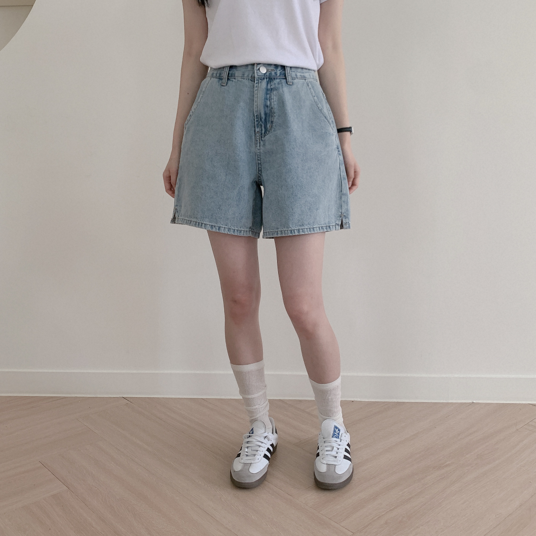 [2XL까지/옆트임] 하이웨스트 옆포인트 데님 숏 팬츠 청 반바지 (3color)