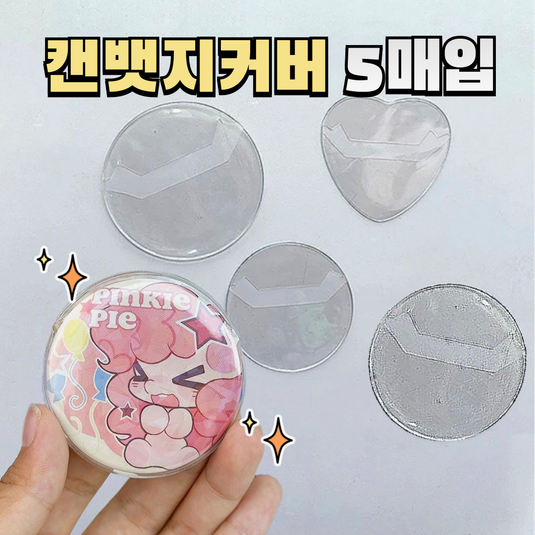 (5매) 캔 뱃지 커버 투명 케이스 굿즈 보호 보관 핀 버튼 배지 뺏지 원형 하트 파우치 홀더