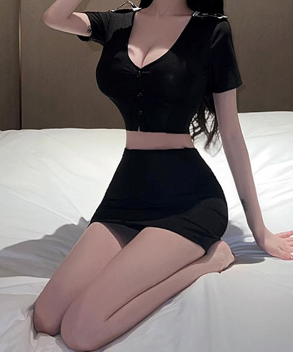레스 섹시 슬림 크롭 코스프레 제복 이벤트룩 투피스 코디세트