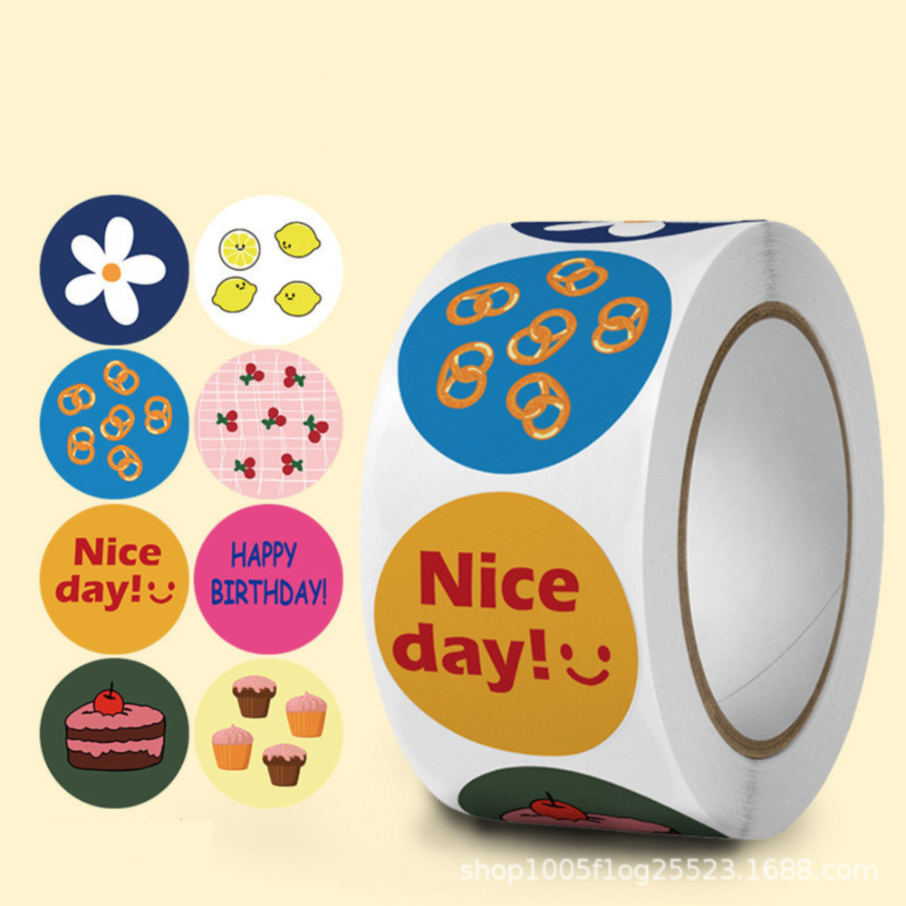 선물 포장 답례품 구디백 다꾸 일러스트 데이지 케이크 디저트 대용량 스티커 1롤 500개