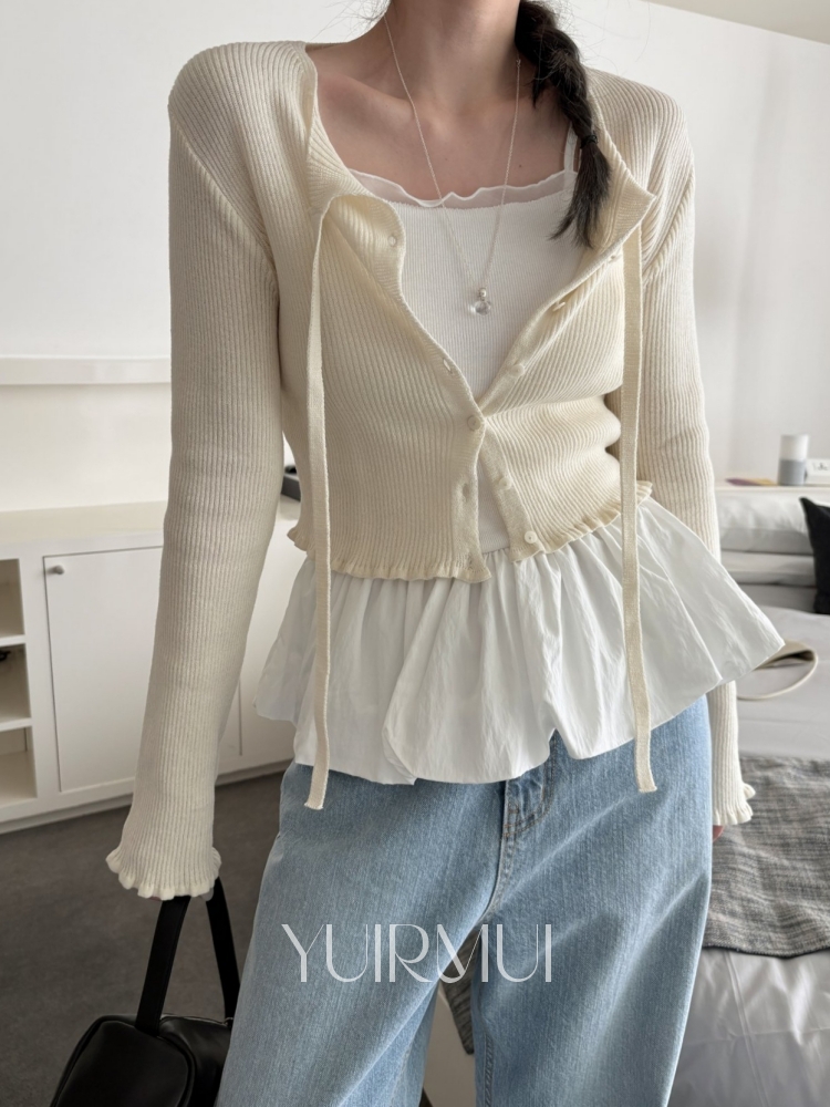 mellounge 멜라운지 벌룬 쉬폰 레이어드 뷔스티에 슬리브리스 블라우스 2color
