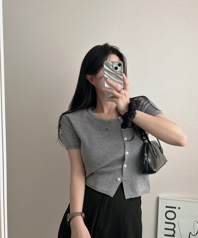 [봄니트/5color] 사선단추 라운드넥 봄 반팔 가디건