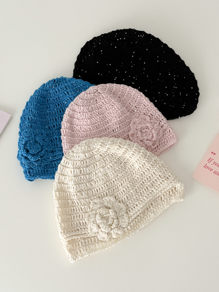 [🤎가을룩/MD추천❣︎] 로즈 스팽글 봄 가을 그물 니트 비니 모자 4color
