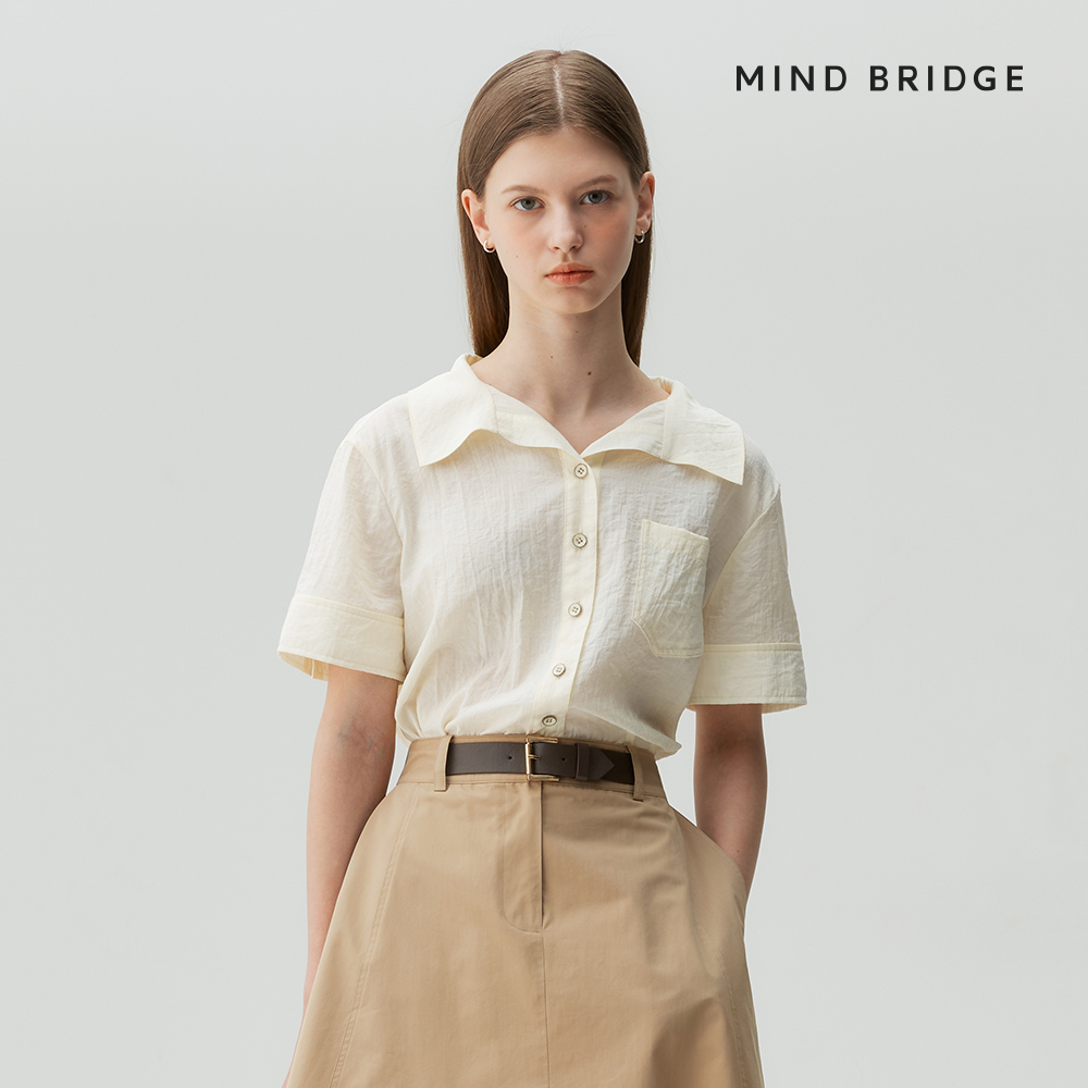 밑단 밴딩 오픈 카라 반팔 셔츠